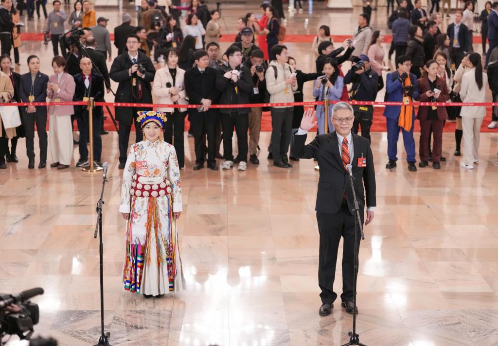 3月5日,第十四届全国人民代表大会第三次会议首场“代表通道”集中采访活动在北京人民大会堂举行。新华社记者 陈晔华 摄