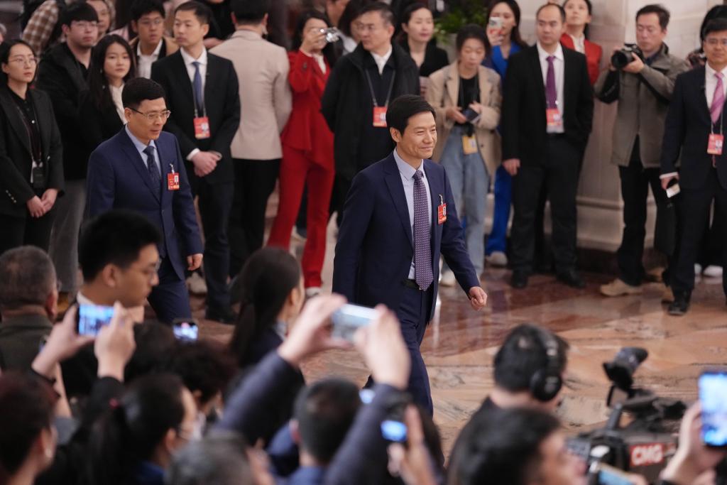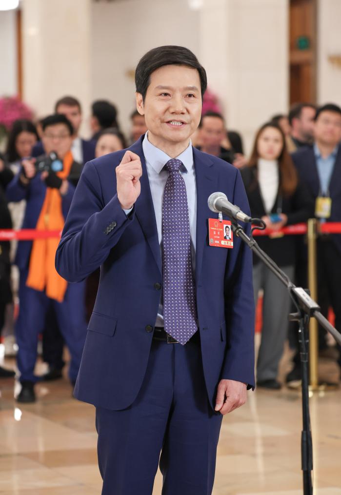 3月5日,第十四届全国人民代表大会第三次会议首场“代表通道”集中采访活动在北京人民大会堂举行。这是全国人大代表雷军接受媒体采访。新华社记者 卢烨 摄