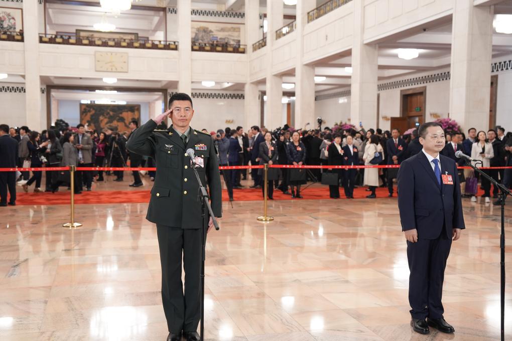3月5日,第十四届全国人民代表大会第三次会议首场“代表通道”集中采访活动在北京人民大会堂举行。这是全国人大代表张冬旭接受媒体采访。新华社记者 胥冰洁 摄