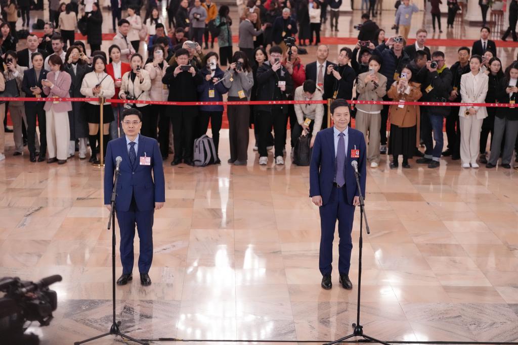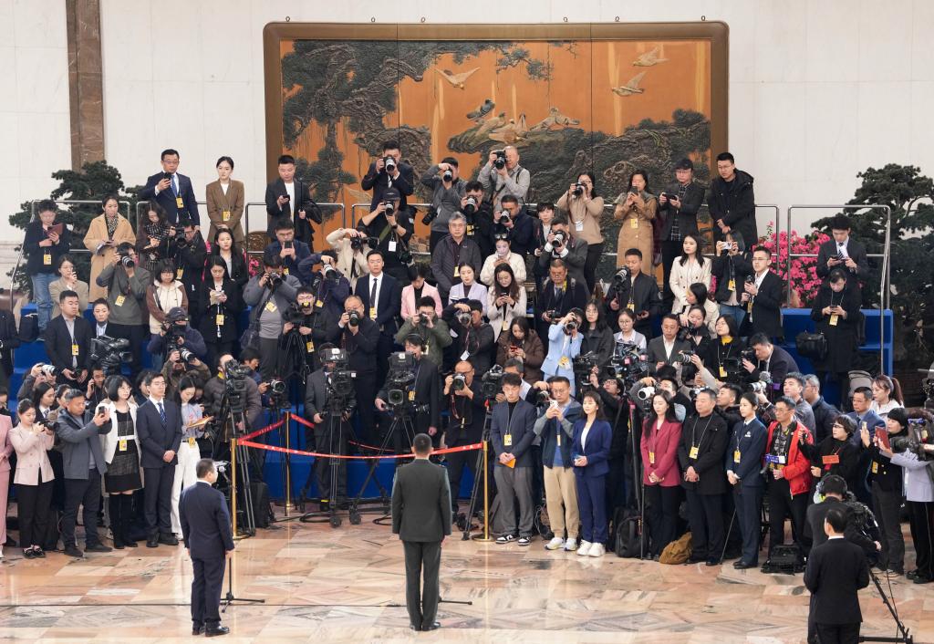 3月5日,第十四届全国人民代表大会第三次会议首场“代表通道”集中采访活动在北京人民大会堂举行。新华社记者 郑焕松 摄