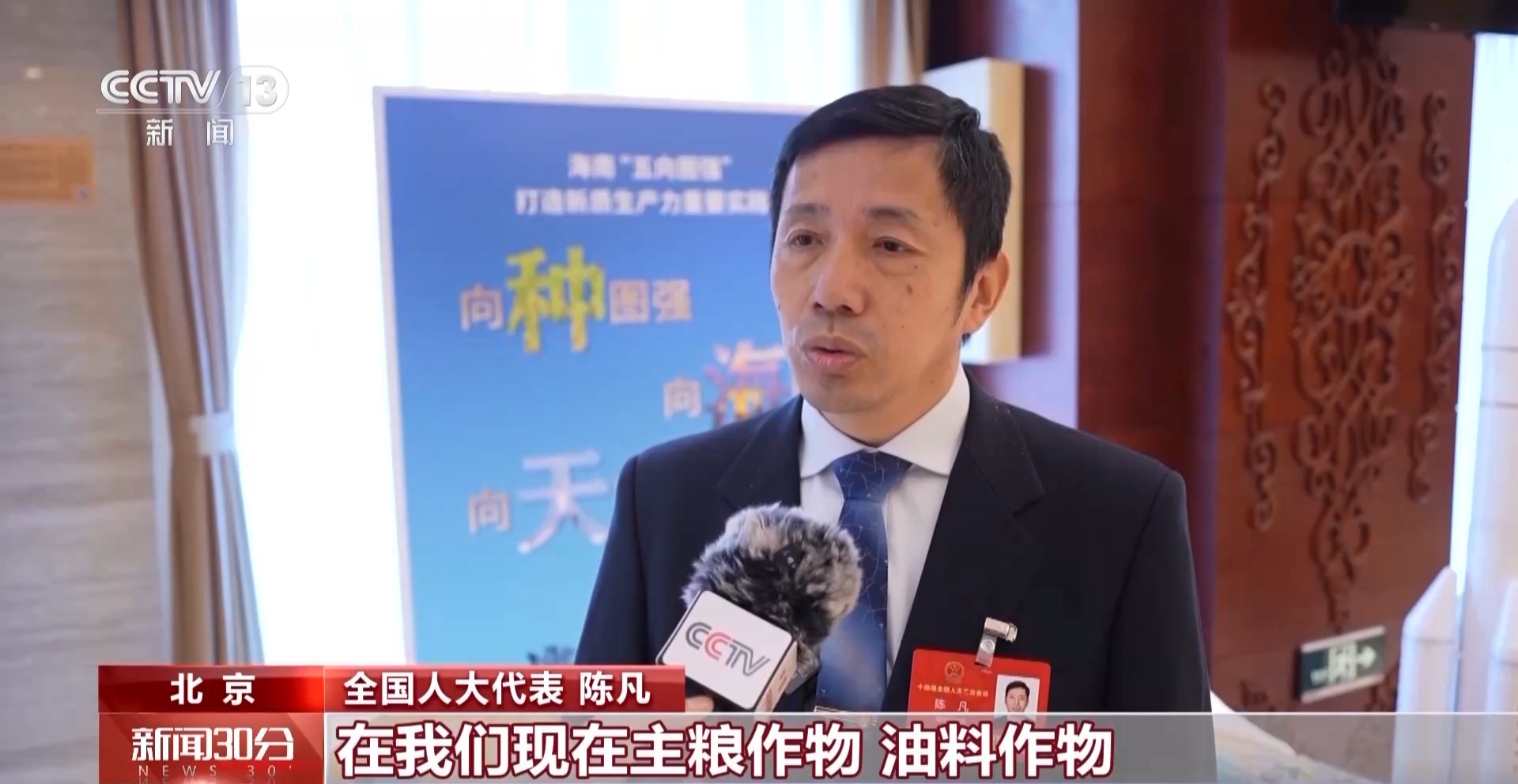 全国人大代表陈凡,来自崖洲湾国家实验室,他告诉记者,水稻、大豆、玉米等多种粮食作物的种子,经过南繁培育,产量更高、品质更好。目前,他们在海南的育制种面积超过20万亩。