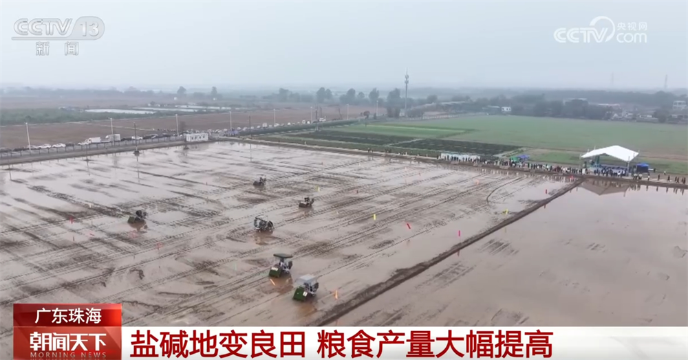 眼下正值春耕时节,在珠海市金湾区的一个水稻种植基地,记者看到,超4600亩的水稻正在进行插秧,现场一派繁忙景象。去年,这片由盐碱地改良的水稻田迎来丰收,早稻、晚稻的亩产均超过700斤。这片盐碱地的成功改良使金湾区的粮食播种面积和产量都有了大幅增长。