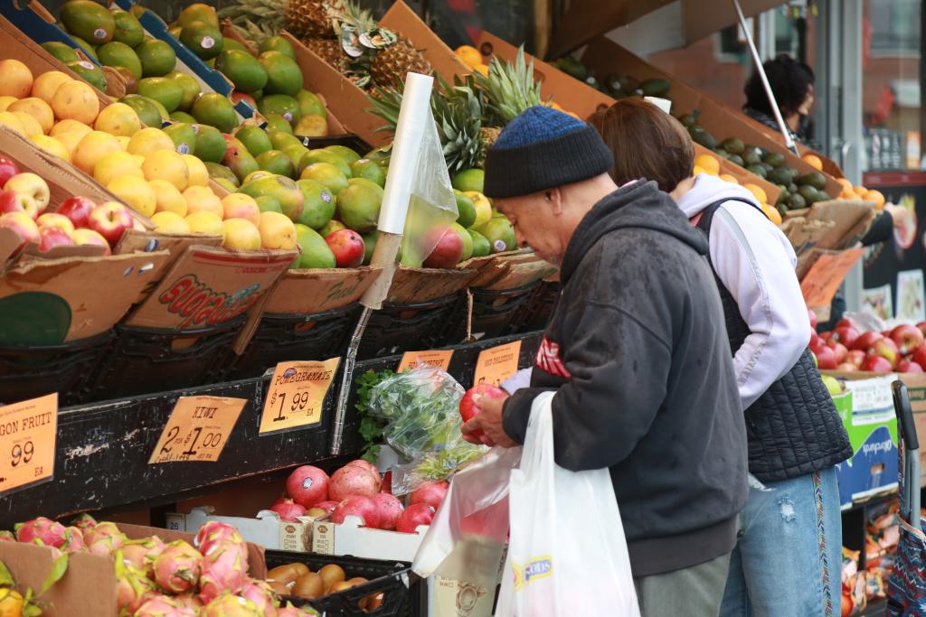 2024年12月11日,顾客在美国纽约一家超市挑选水果。新华社记者刘亚南摄