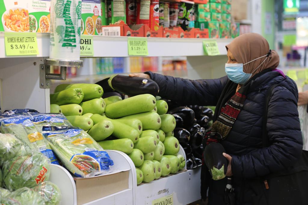 2024年12月11日,顾客在美国纽约一家超市挑选蔬菜。新华社记者刘亚南摄