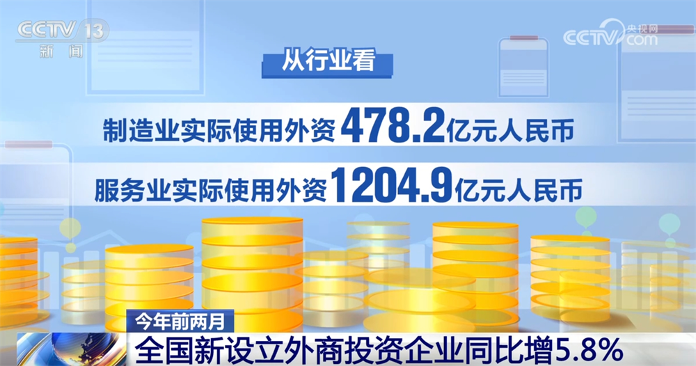 央视网消息:商务部3月14日发布数据,今年前2月,全国新设立外商投资企业7574家,同比增长5.8%;实际使用外资金额1712.1亿元人民币。