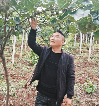 安文忠在查看猕猴桃生长状况。