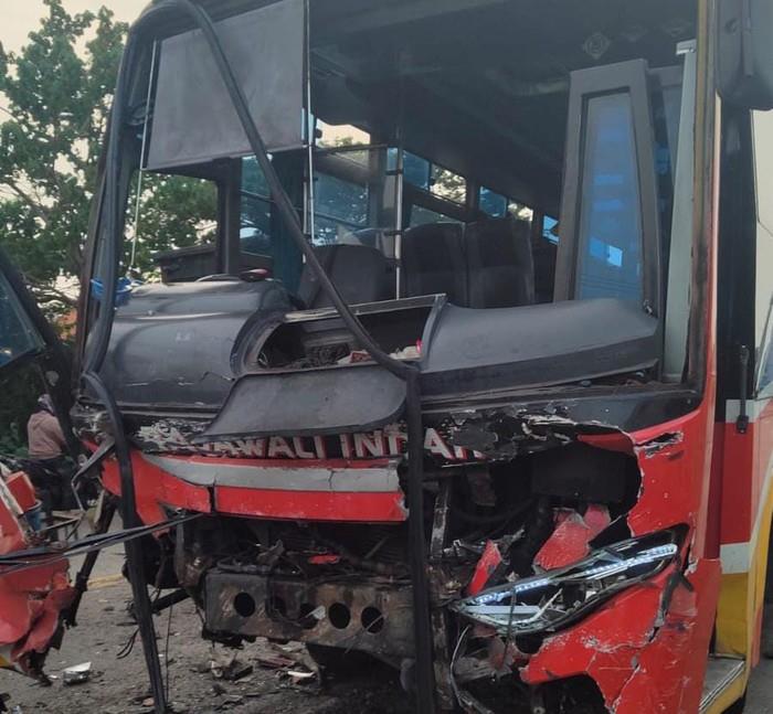 事故发生在东爪哇省格雷西克市的一条高速公路上,当时一辆客车突然转向对向车道,与一辆巴士迎面相撞。当地警方称,事故可能是由于其中一辆车轮胎打滑,车辆失去控制而引起的。