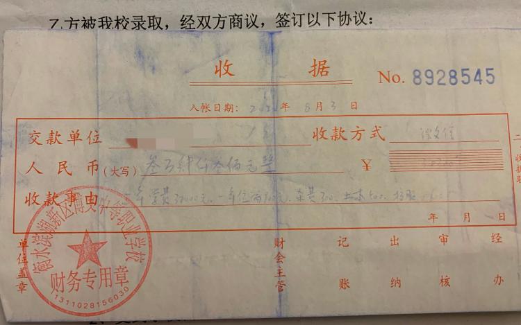 张先生孩子于2020年在衡水滨湖新区博文中等职业学校入学时,向该校一次性缴纳了3年学费(图为受访者提供)