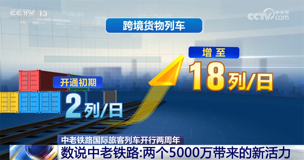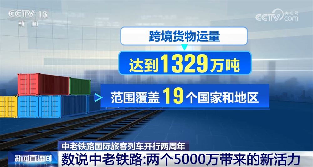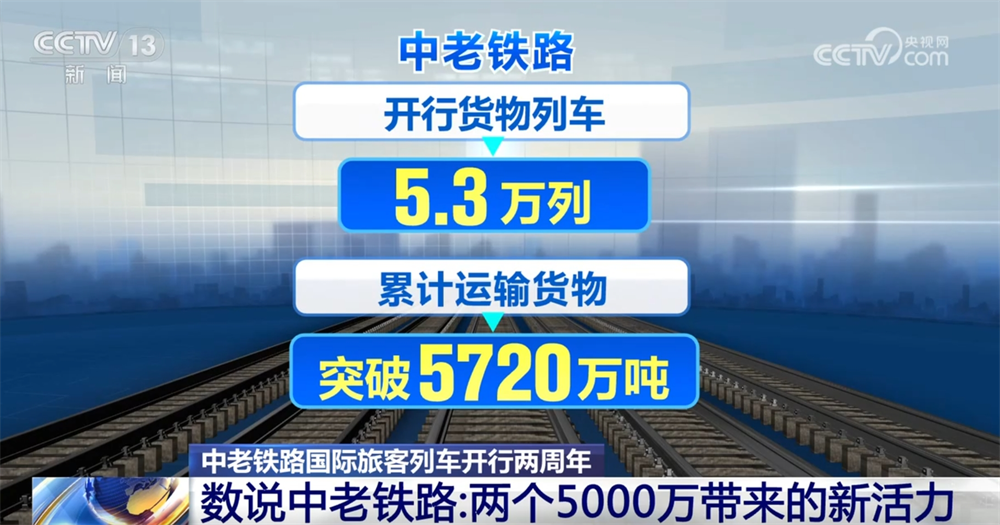 央视网消息:自中老铁路开通运营以来,客货运输数据双双突破了5000万,为促进中老两国人员往来、货物运输、人文交流注入了强劲动力。