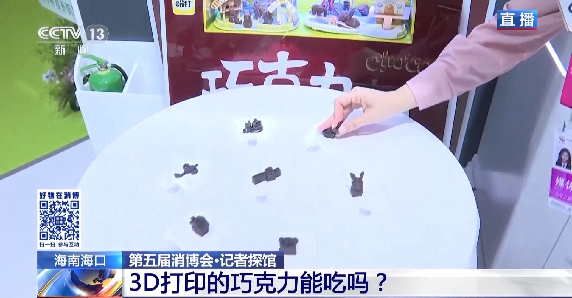 而旁边巧克力3D打印机更是让人垂涎欲滴,提前选好自己喜欢的造型,3~5分钟就能吃到巧克力。