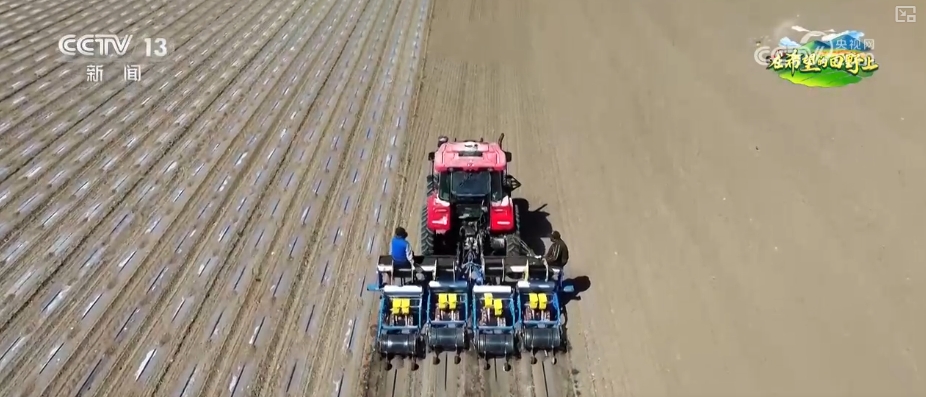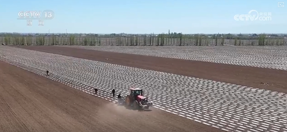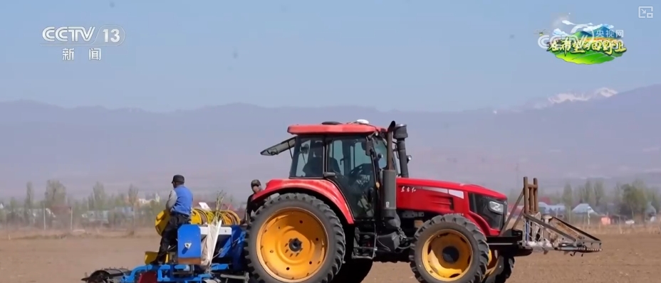 在伊宁县愉群翁回族乡新户村的广袤田野上,一台台配备了北斗卫星导航系统的播种机穿梭忙碌,将种子精准播撒进肥沃的土地。而在播种过程中,薄膜与滴灌设施均匀铺设,施肥与播种同步进行,实现一体化作业。
