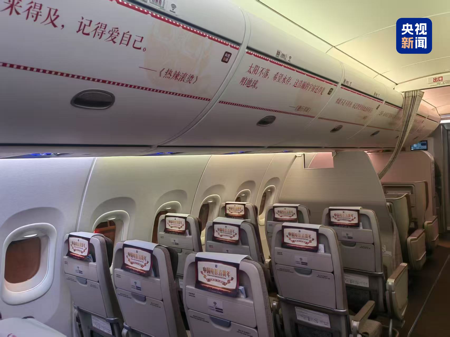 东方航空机舱内展示众多电影元素。