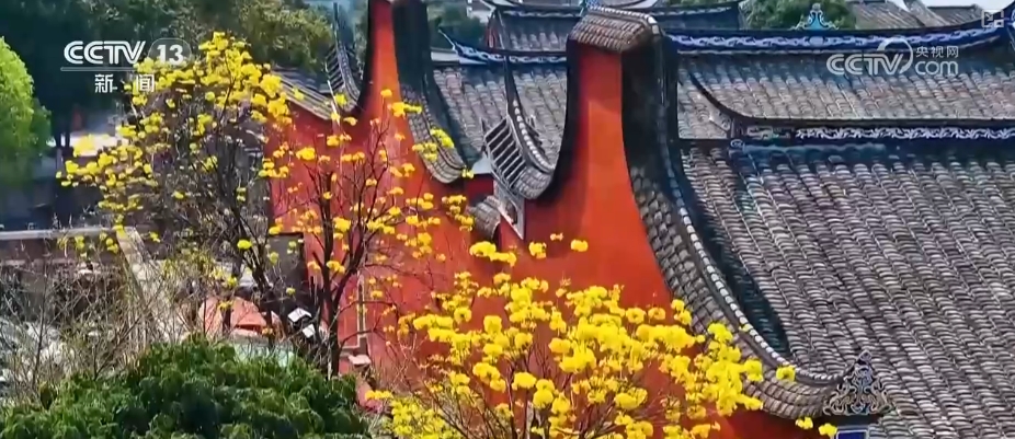 不仅是流苏花,这个季节,火红的木棉花、明艳灵动的黄花风铃木都迎来了盛花期。花朵与传统古厝交织成画,充满了春日的灵动与诗意,也成为了这个春日,福州古厝发出的“最美邀请函”。