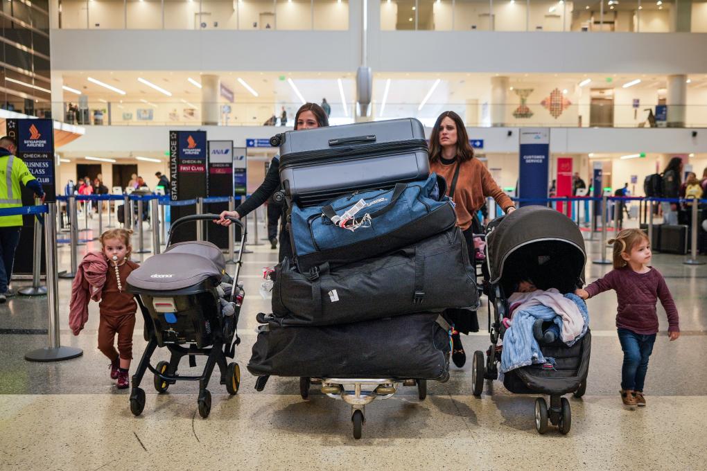 2024年11月27日,在美国洛杉矶国际机场,人们推着行李准备办理登机手续。新华社/美联
