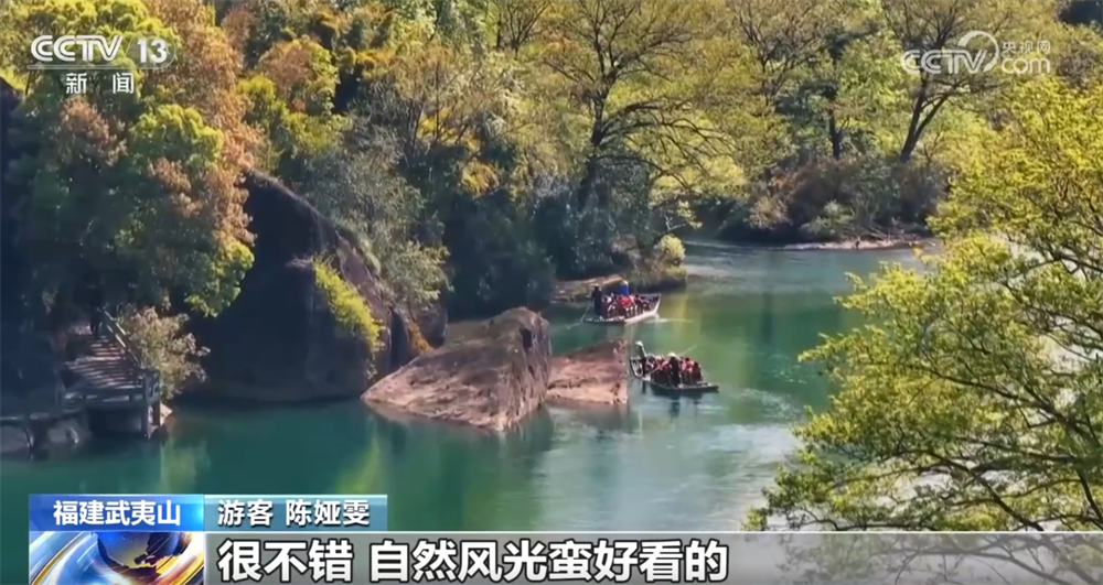 央视网消息:在福建的武夷山国家公园,碧水丹山的绝美景观吸引了八方游客纷至沓来。