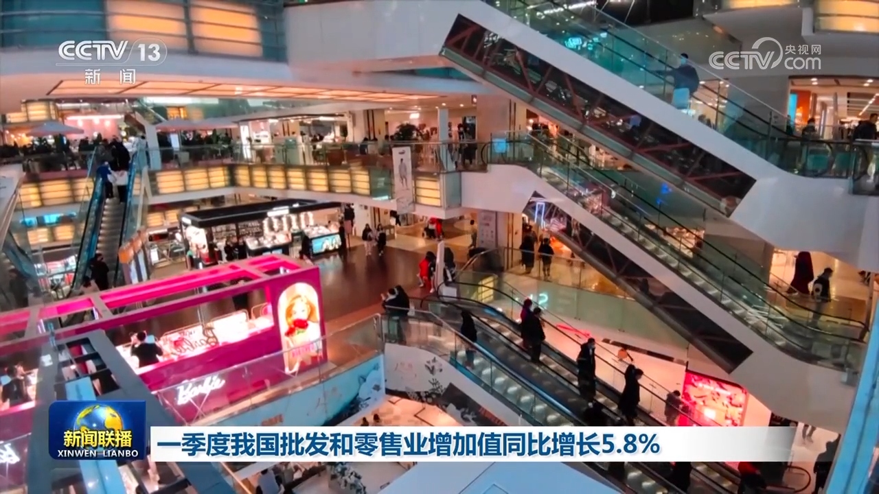 央视网消息:4月21日《新闻联播》报道,我国加快推进服务业扩大开放综合试点、一季度批发和零售业增加值同比增长5.8%、一季度新设经营主体606.3万户、各地一批重大工程建设加速推进……多领域高质量发展稳步推进,经济活力持续增强。