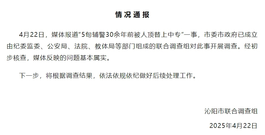 ·5旬辅警30余年前被人顶替上中专?河南沁阳:基本属实,将依法处理。