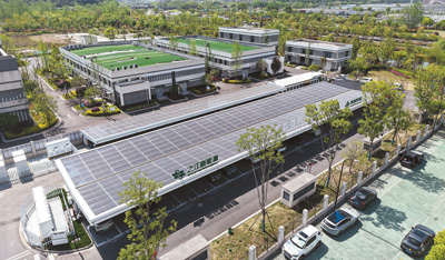 浙江杭州梧桐路“光储充检”智慧能源综合示范超级充电站于近期投入运营。该超充站拥有64个充电车位,并配备了一个可实现汽车与电网双向能量流动的V2G反向充电桩。龙 巍摄(人民视觉)
