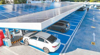 江西省赣州市建成市政中心“光储超充、车网互动”一体化示范站、沙河“燃气+光储超充”等多座公共超充站。图为近日,新能源汽车在赣州市章贡区章江街道赣州迎宾加能站内充电。胡江涛摄(人民视觉)
