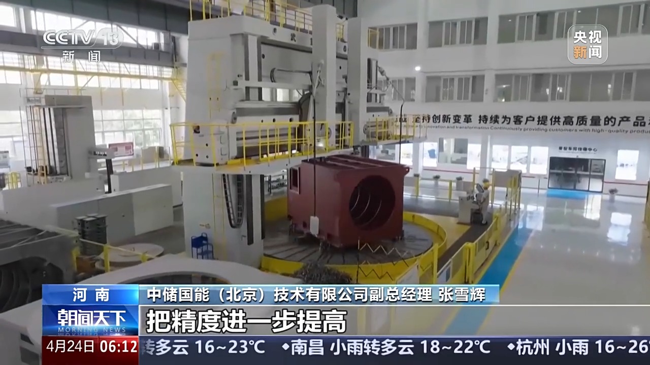 中储国能(北京)技术有限公司副总经理 张雪辉:机组每天温度冷热交替,所以采用单根线棒绝缘技术,使得在运行工况能有一定的伸缩余量,端部是一个柔性支撑的结构,确保冷热交替下机组的安全稳定运行。