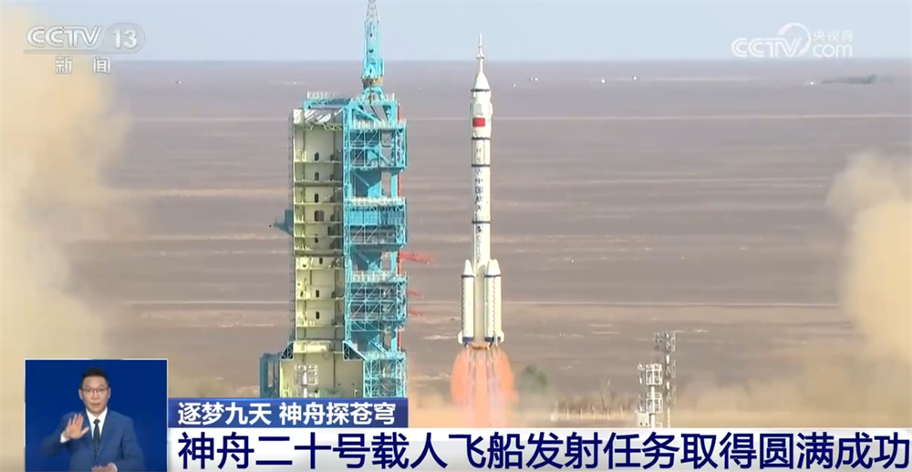 央视网消息:一箭凌云九霄重,万里星河追梦,神舟探苍穹。4月24日17时17分,搭载神舟二十号载人飞船的长征二号F遥二十运载火箭在酒泉卫星发射中心点火发射,约10分钟后,神舟二十号载人飞船与火箭成功分离,进入预定轨道。目前,航天员乘组状态良好,发射取得圆满成功。