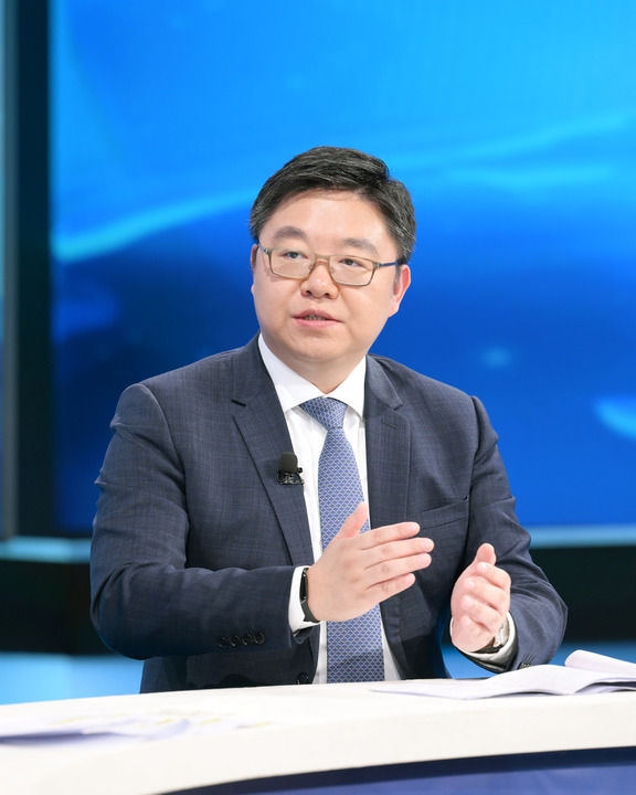 国家发展改革委民营经济发展局副局长刘民在第十五期“中国经济圆桌会”录制现场发言。新华社记者 李贺 摄