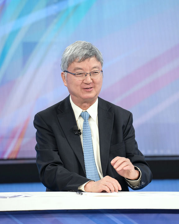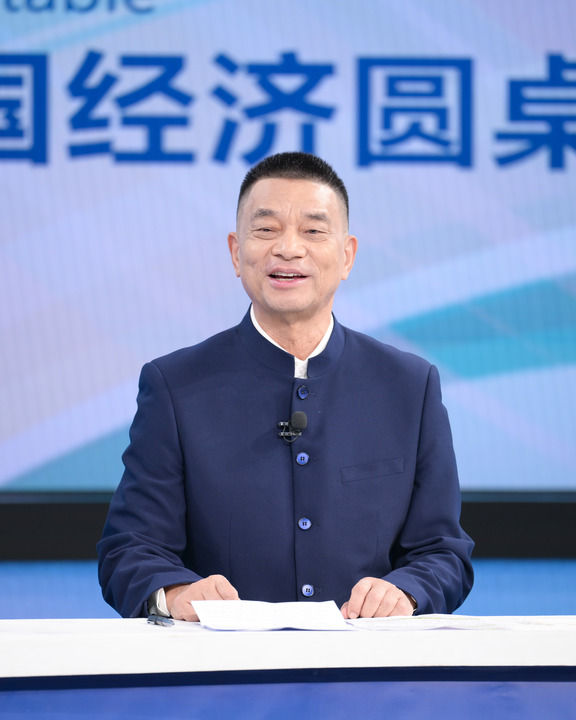 中国国际经济交流中心资深专家委员朱民在第十五期“中国经济圆桌会”录制现场发言。新华社记者 李贺 摄