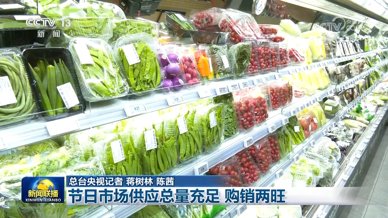 央视网消息(新闻联播):“五一”假期临近,城乡市场迎来消费高峰。农业农村部最新调度显示,当前,粮油库存数量充足,“菜篮子”产品产能总体充裕,在田蔬菜超过8300万亩,面积产量均小幅增长,肉蛋奶、水果、水产品品种丰富,预计“五一”期间,“米袋子”“菜篮子”产品市场购销两旺、价格基本稳定。