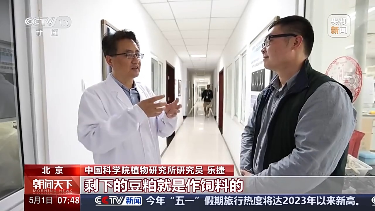 中国科学院植物研究所研究员 乐捷:别看是个小草,蛋白质很高的,能替代大豆(饲料作物)。我们每年进口的大豆一个作用就是榨豆油,剩下的豆粕就是作饲料的。苜蓿就是非常好的饲草,而且我们可以利用盐碱地去种,饲草去养牛养羊,然后人才有肉吃。一定要把饭碗端在自己的手里,当下来说自力更生、艰苦奋斗,要坚持这种优良的传统。
