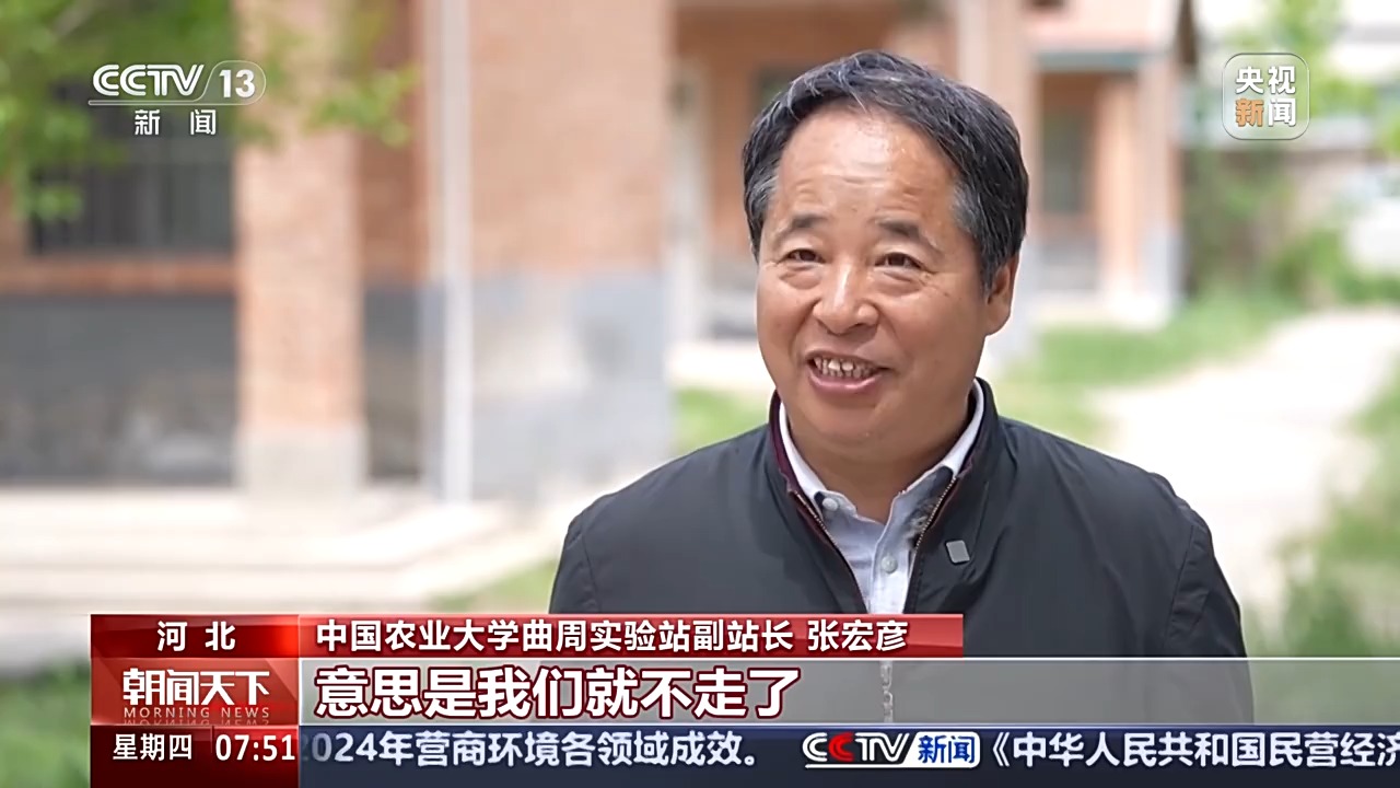 中国农业大学曲周实验站副教授 焦小强:希望我们的天更蓝、水更清、地更绿,我们的土地里生产出更多的粮食来,真的就像《南泥湾》的歌词里面所唱的,就是遍地是牛羊。这是我们每一个农业人的梦想,我们现在也在曲周的大地上,来践行着我们自己的梦想。