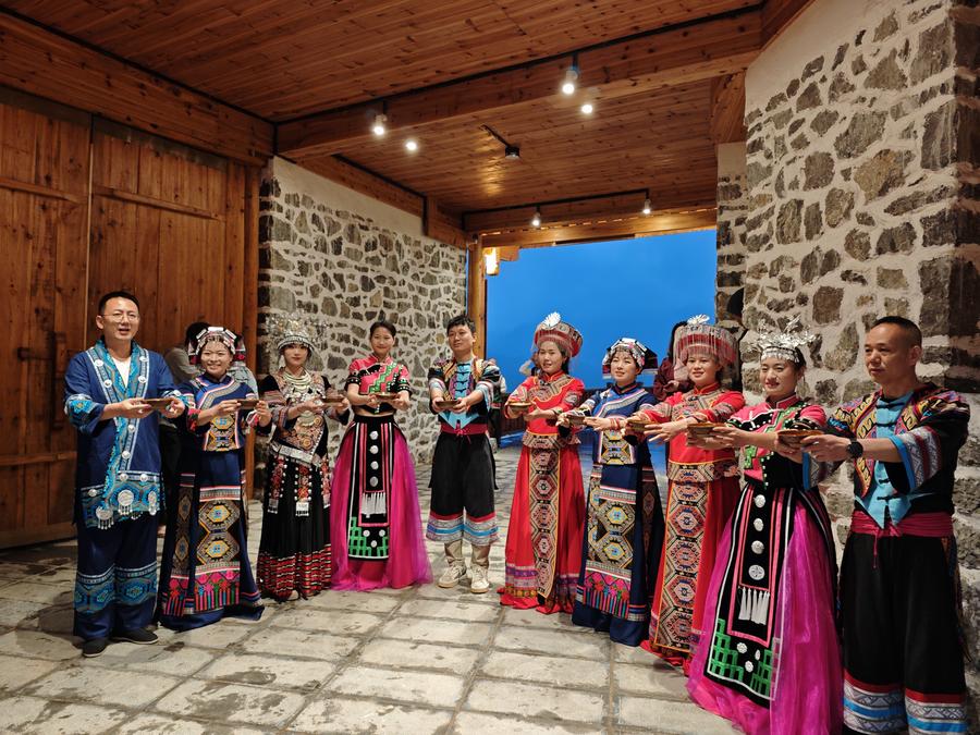 新华社重庆5月1日电(记者周滨滔、吴梦桐、雷明宇)“喝上一碗苞谷酒嘞,请举杯!”伴随着晚春细雨,酉水河畔的吊脚楼内灯火通明。在重庆市酉阳土家族苗族自治县河湾村,村民们高声唱着山歌,以土家族传统习俗“拦门酒”迎接来自比利时孔多塞大学的19名师生,此次来到重庆,他们将围绕中国少数民族传统文化、非物质文化遗产保护等开展研学活动。