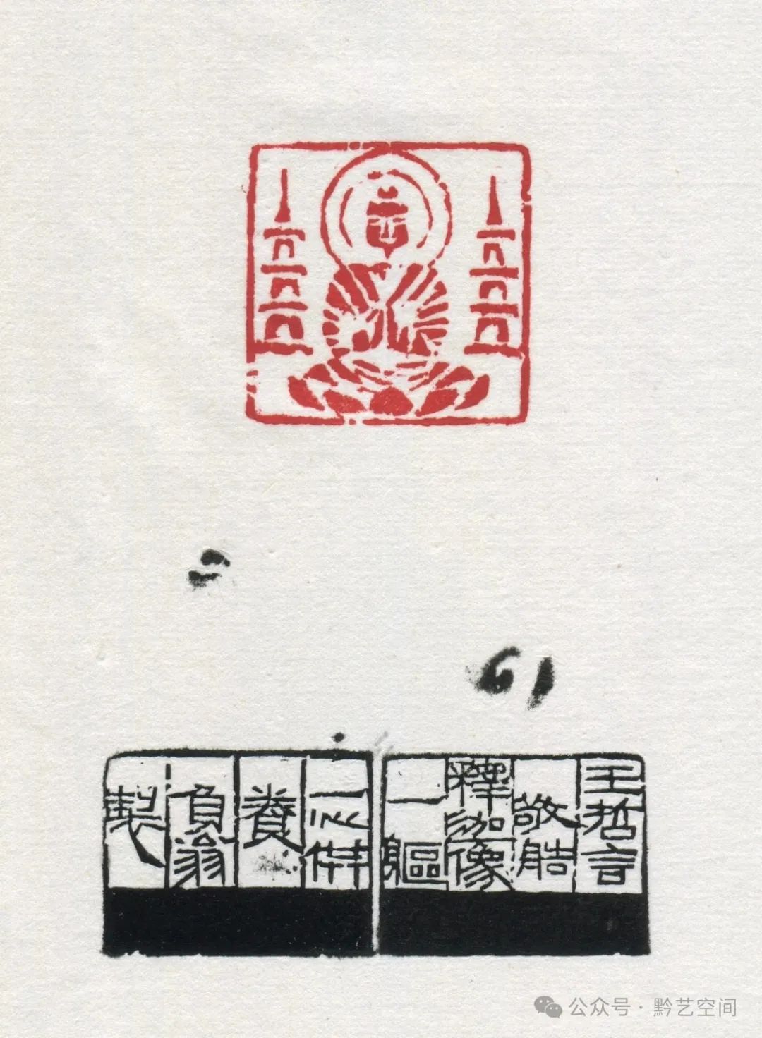 “孔雀图”佛像印,佛像端庄,祥云环绕,孔雀驮承,真力弥满,刀笔灵动劲健,线条辗转流动,有升腾动荡之感,允为白文肖形印中之精品。
