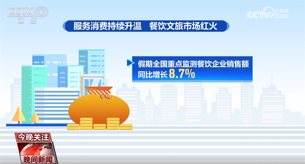 据商务部商务大数据监测,假期全国重点零售和餐饮企业销售额同比增长6.3%。商务部重点监测零售企业家电、汽车、通讯器材销售额同比分别增长15.5%、13.7%和10.5%。电商平台智能家居产品销售额同比增长超20%。服务消费持续升温,餐饮文旅市场红火。假期全国重点监测餐饮企业销售额同比增长8.7%。