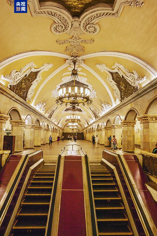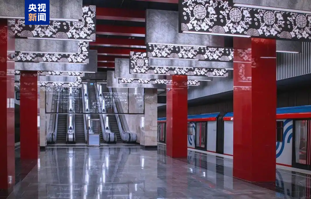 △莫斯科地铁米丘林大街站由中企中标建设,地铁站有红色立柱、团寿纹、祥云等中国元素装饰。