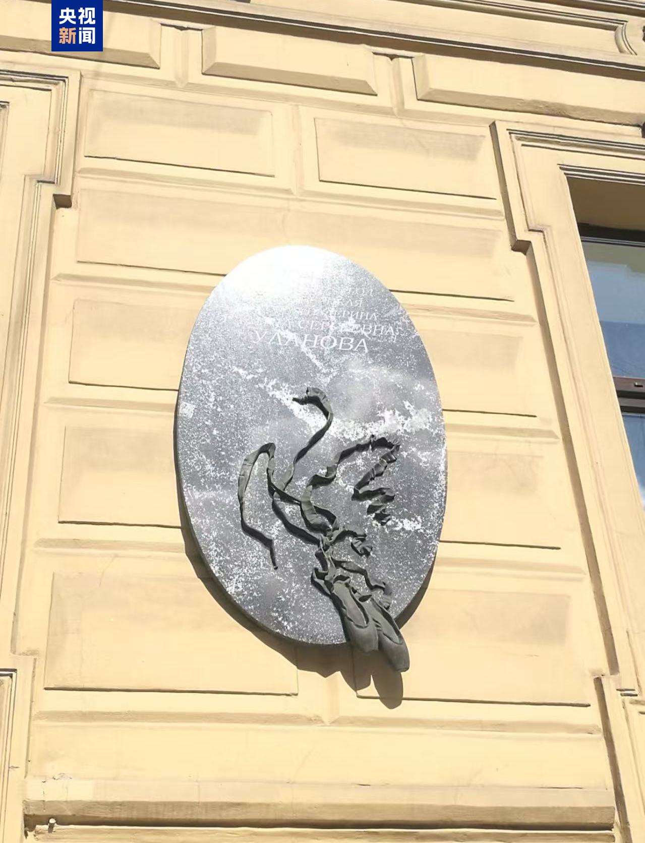 △俄罗斯著名芭蕾舞女演员加林娜·乌兰诺娃在圣彼得堡曾经的住所外,悬挂有芭蕾舞鞋的雕塑。