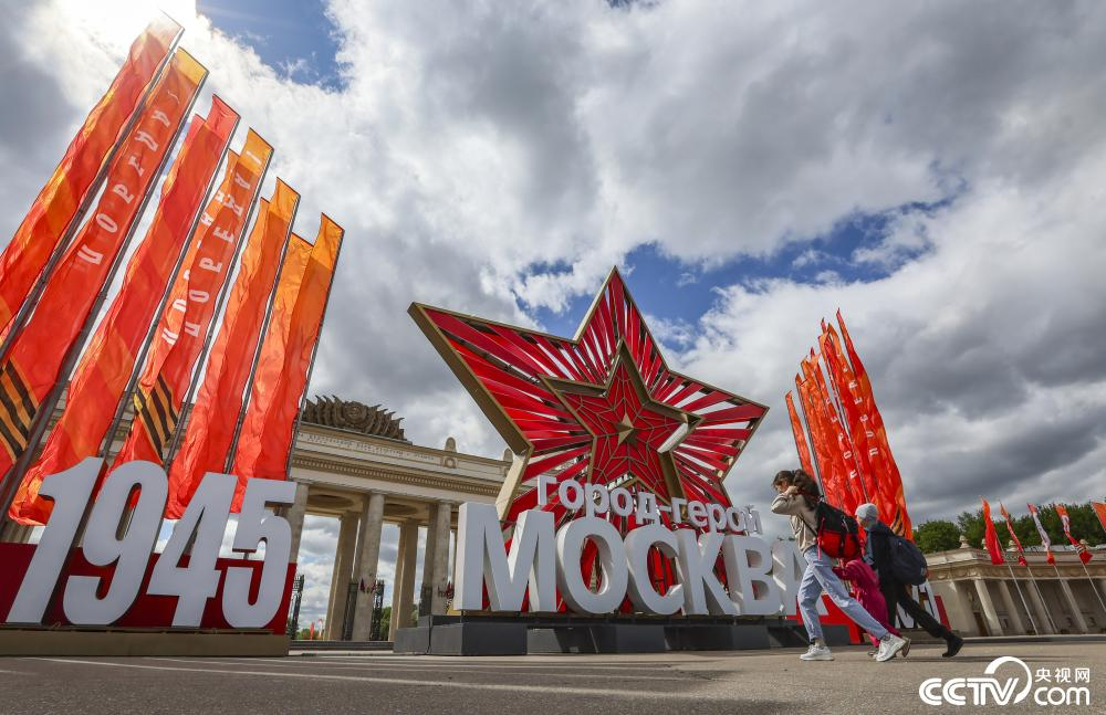 近日,俄罗斯莫斯科街头装扮一新,“盛装”迎接纪念苏联伟大卫国战争胜利80周年庆典。