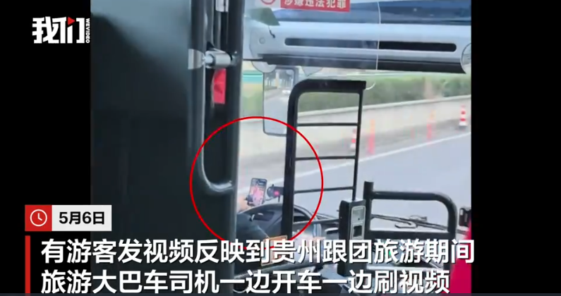 ·旅游大巴司机边开车边刷视频近半小时,贵阳市交通运输部门:涉事司机解聘、客运公司整改。