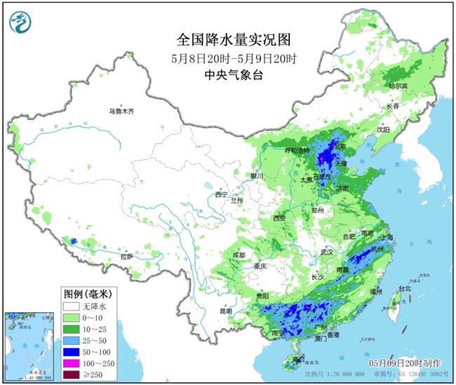 央视网消息:据中国天气网消息,过去2天,中东部出现了大范围降雨,其中昨天,北京、河北、山西共24个站点降水量打破5月单日纪录,河北涞源和徐水,还创造了当地最早大暴雨日纪录,首次在5月出现了大暴雨。