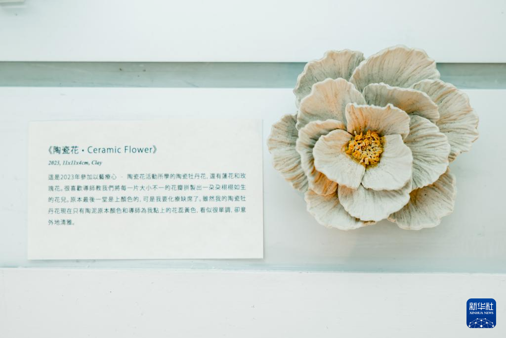 “这是2023年参加‘以艺疗心’活动所学的陶瓷牡丹花……原本最后一堂课是上颜色的,可是我要化疗缺席了。我的陶瓷牡丹花看似很单调,却意外清雅。”