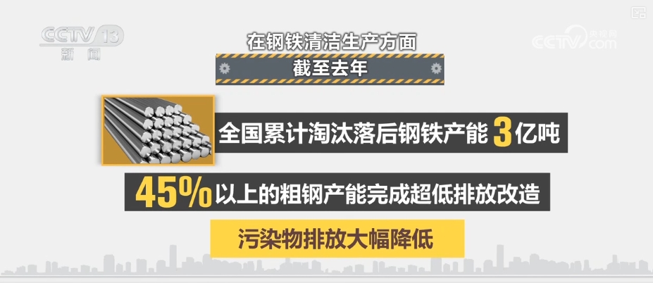 在钢铁清洁生产方面,截至2024年,全国累计淘汰落后钢铁产能3亿吨,45%以上的粗钢产能完成超低排放改造,污染物排放大幅降低,颗粒物、二氧化硫等主要污染物减少超75%。