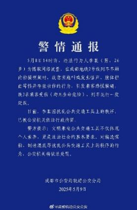 ·成都警方通报男子地铁上拍视频致乘客恐慌受伤:已行政拘留。