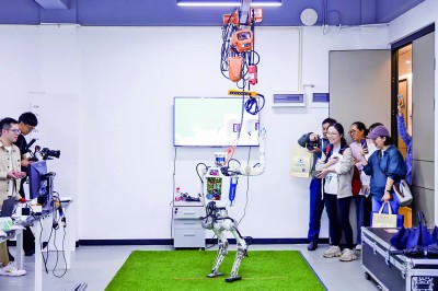 浙江大学控制科学与工程学院仿生腿足机器人团队向公众展示最新成果。资料图片