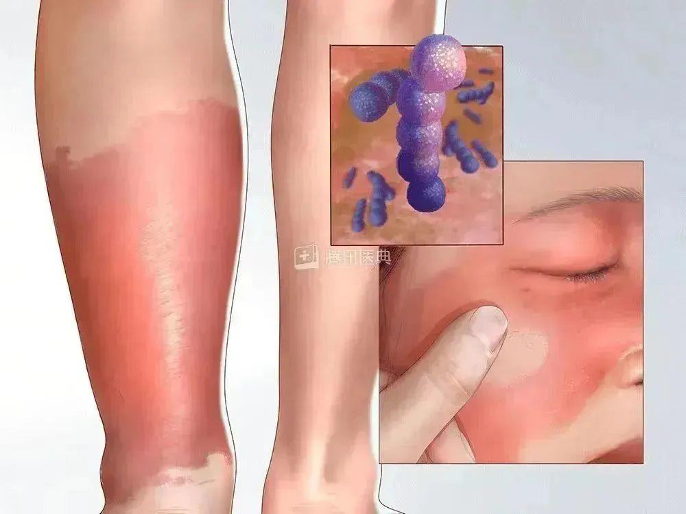 它大多是由乙型溶血性链球菌感染引起的一种急性感染性皮肤疾病,最常见的感染部位是下肢和面部,表现为局部的红斑、表面发热,伴有疼痛。