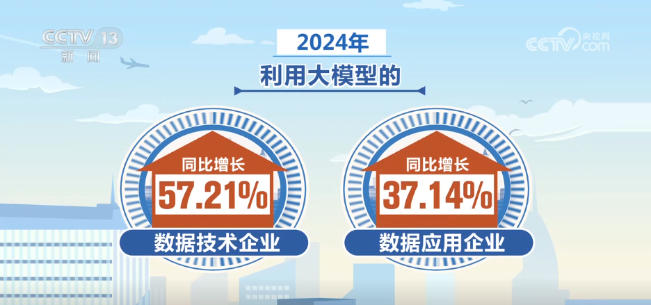 2024年,我国开发或应用人工智能的企业数量同比增长36%,高质量数据集数量同比增长27.4%,有力支撑人工智能训练和应用。利用大模型的数据技术企业和数据应用企业同比分别增长57.21%、37.14%。