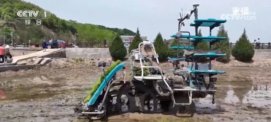 与此同时,位于黄土高原上的南泥湾迎来水稻插秧季。搭载北斗导航系统的无人驾驶插秧机首次驶入南泥湾。