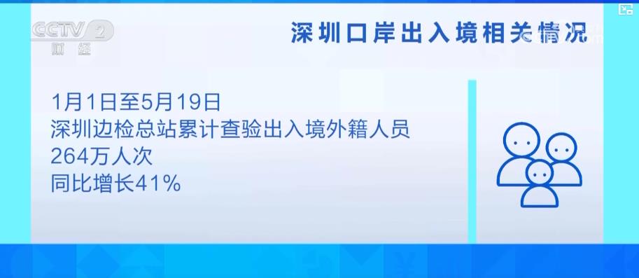 截至5月19日,深圳边检总站累计查验出入境外籍人员达264万人次,同比增长41%,其中免签入境外国人56万人次,同比增长105%。