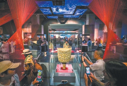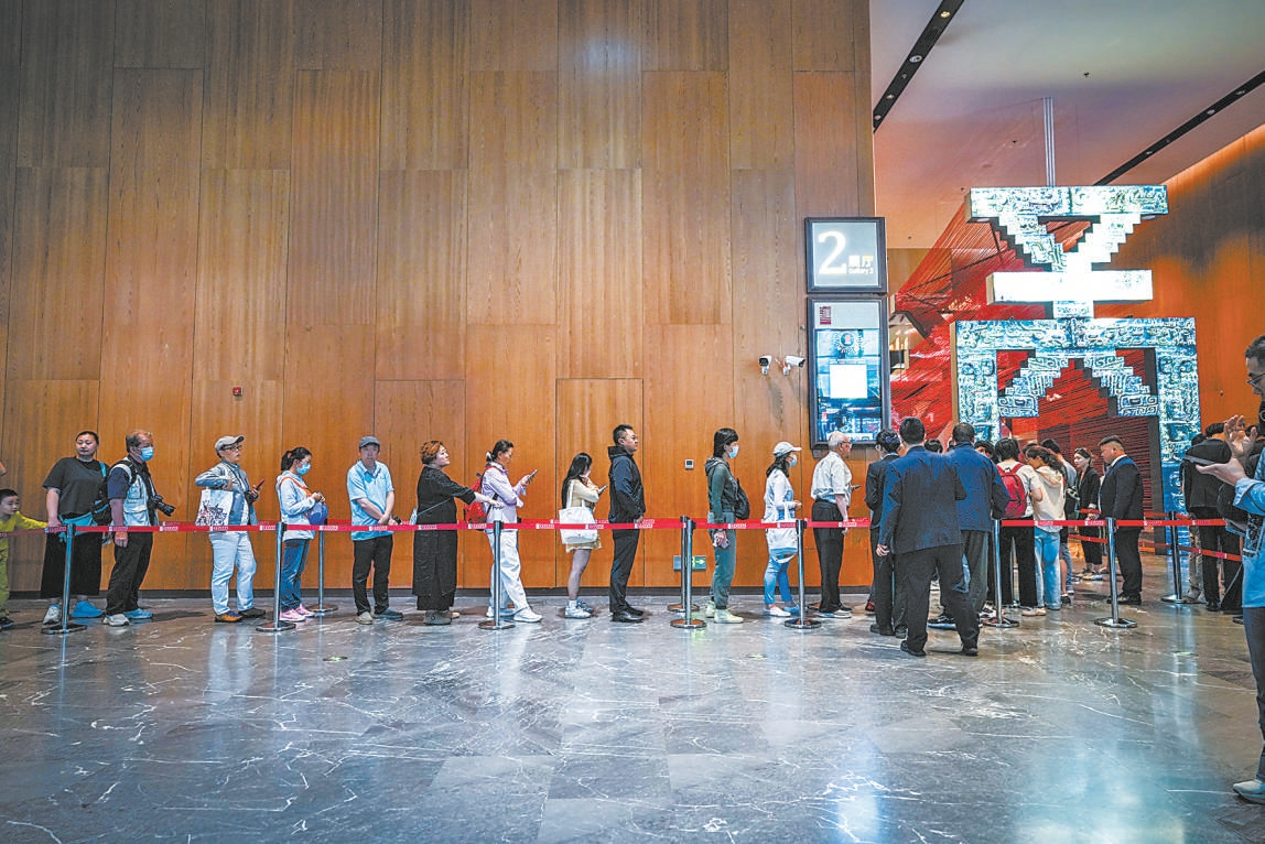 全国28家文博单位338件(套)文物重现这段群星璀璨的文明。热情观展的市民游客有序排队入场参观。