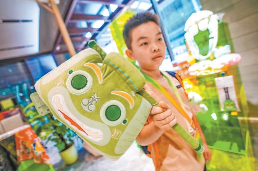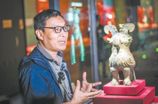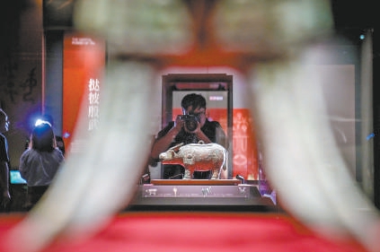 策展团队还甄选了一批“显眼包”文物。“我们在选品的时候,也会考虑一些好玩、奇特的文物,往往这类器物都是孤品。”高红清举例,成都金沙遗址博物馆的铜人形器,被大家称作穿越版“航天服”,更有网友戏称它是“开瓶器”;山西博物院收藏的龙形觥,形似龙舟可载酒,这只“小龙”把头高高昂起,双眼圆凸、两角开张,一排不太整齐的牙齿,散发出“奶凶”气质……“这些文物自带话题热度,能够拉近观众与展览的距离。”