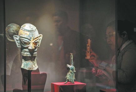 一批珍贵甲骨,呈现目前所知中国最早成熟文字系统的模样,证实《史记·殷本纪》的商王世系。青铜器上“游走”的神人面图案,勾连起山东、江西、四川等地,证明了这些地区当时在文化上的联系。还有电影《哪吒》的“彩蛋区”,观众能在展柜里找到两只“结界兽”形象的灵感来源——三星堆遗址出土的戴金面罩青铜人头像和青铜鹰形铃。