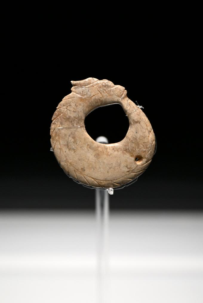 玉龙首尾相衔,蜷曲如环,4.4厘米的身躯刻有17道龙鳞纹。